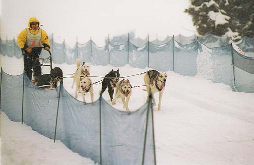 ラストスパートでゴールインの図です。この6頭引きが出場組が多くやはり、スピード感と御犬様のダイナニズムで見ていても迫力があります。 犬好きの方ならぜひ観戦してください。
