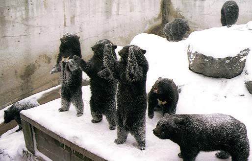 こっ、これはすごいです。集団でご挨拶しています。何せ、彼らは体重がかるく200Kgオーバーの巨体。 こうして集団でご挨拶していると黒い壁がいきなり発生したという感じです。かわいいやら・・・・すごいのやら・・・・