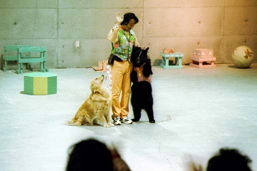 楽しかったショーも終わりバイバイです。くま君もお利口でしたが、ゴールデン君もサポート役をきっちり決めて見事でしした。 今度来る時はもっと暖かい時に来ようといいながら、雪と厳寒の中を御一行さま、名物のアイスクリームを食べながら帰路につきました。