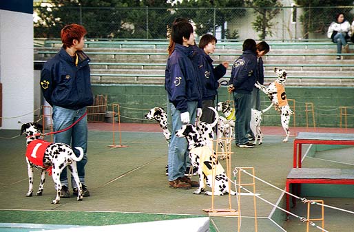 わんわんショーの最後はダル君達によるドックレースです。6匹のダル君達にも緊張の色が隠しきれません。 (影の声 : そんな風には見えないけど)